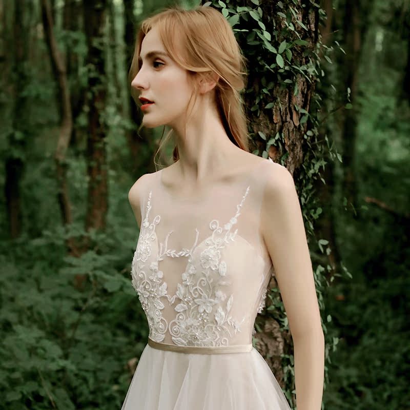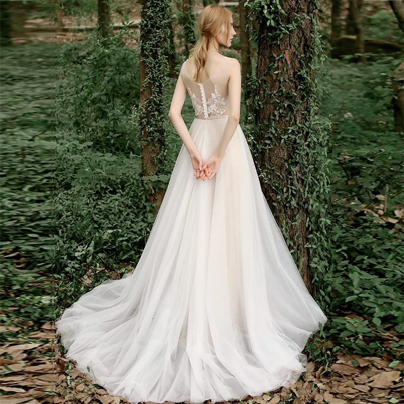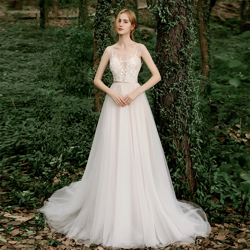 2021 New Hepburn Breeze Bride double shoulder light thin light wedding gown lace brief Trailing Greet Guests Light Dresses Dresses