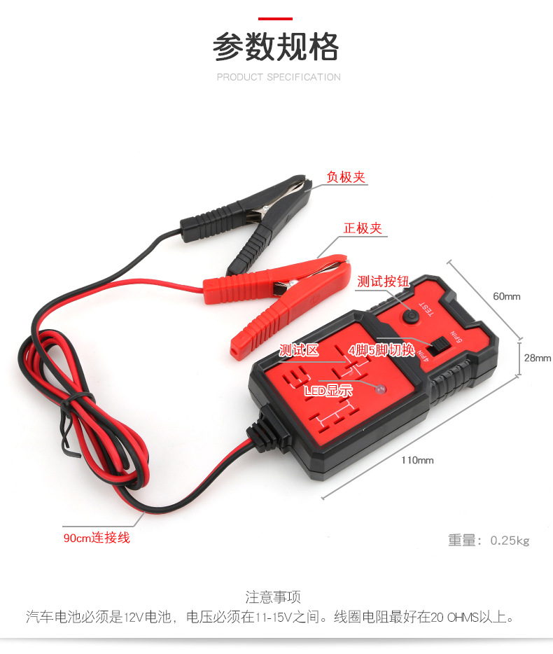 Automotive relay tester analyzer detection diagnostic instrument 12V four-pin five-pin switching LED display detector