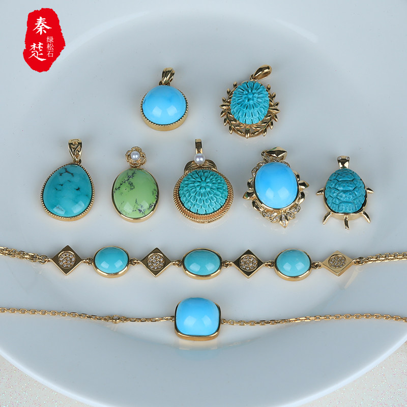 Qin Chu Raw Mine Green Pine Stone Pendant Natural No Optimisation Gmulberry Flower Rich Chia Inlaid Pendant Sub Bracelet Necklace Accessories-Taobao