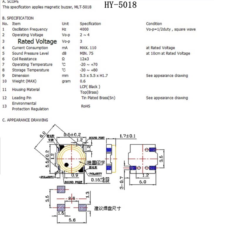 Manufacturers direct SMD patch buzzer 5018 impedance 12Ω frequency voltage 3V finger gyroscope buzzer