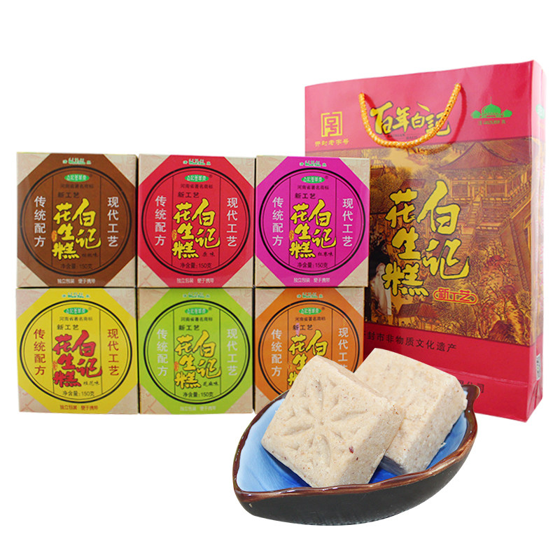 Kaifeng Specialty Baiji Peanut Cake 150gx6 Peanut Crisp Chinese Pastry Traditional Dim Sum Special Snack Gift Box