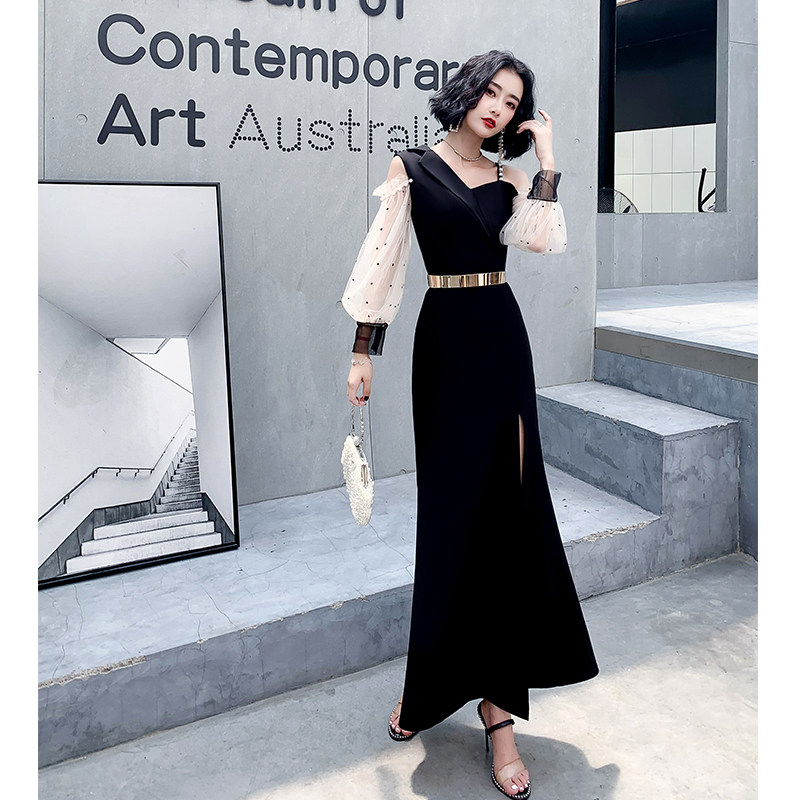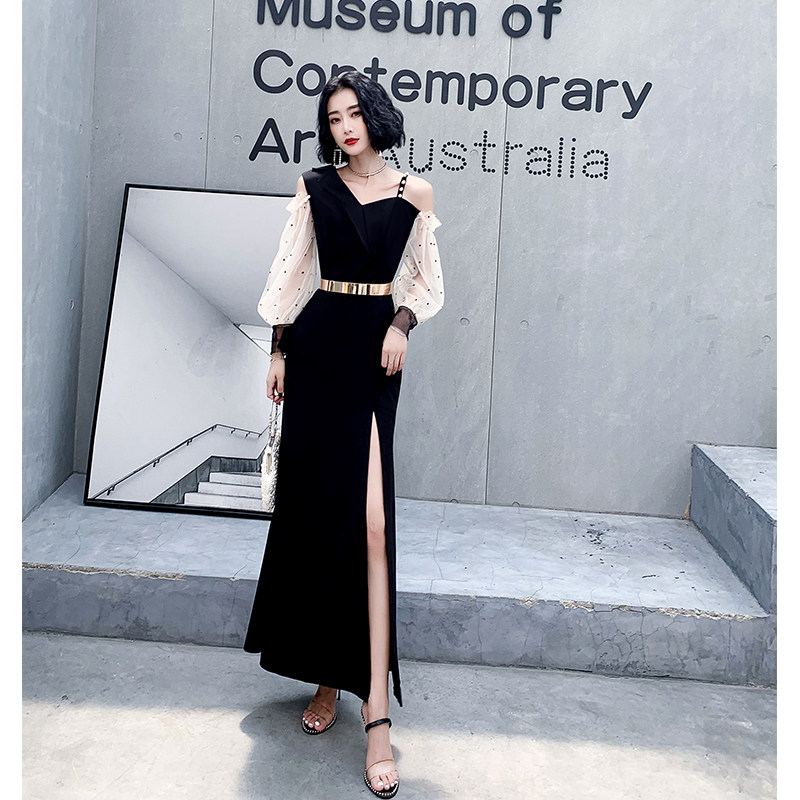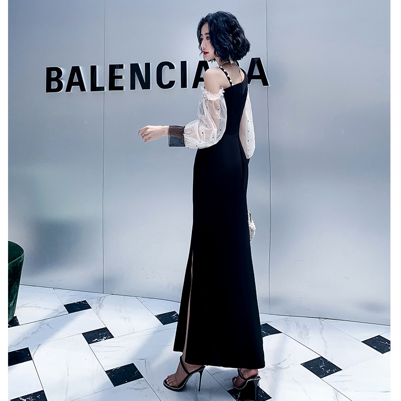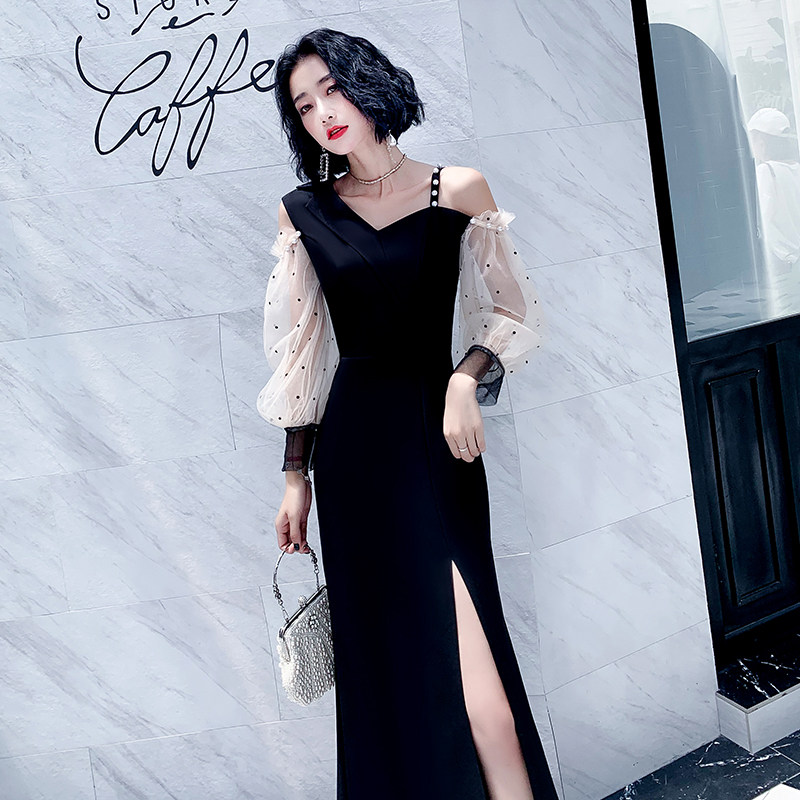 Black small evening dress female banquet socialite temperament host dress summer can usually wear light luxury sexy summer