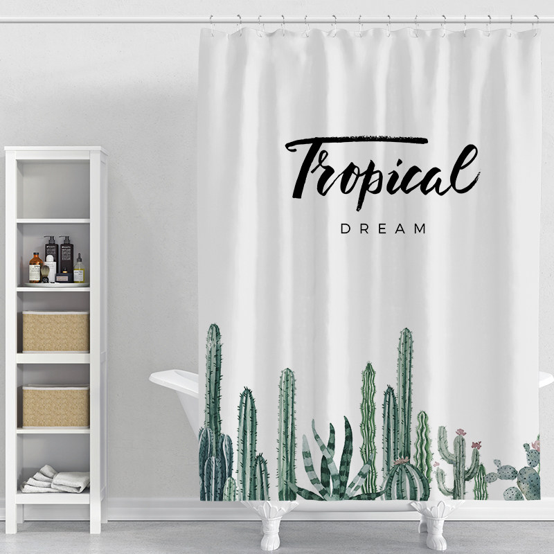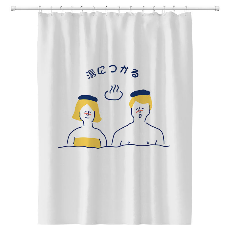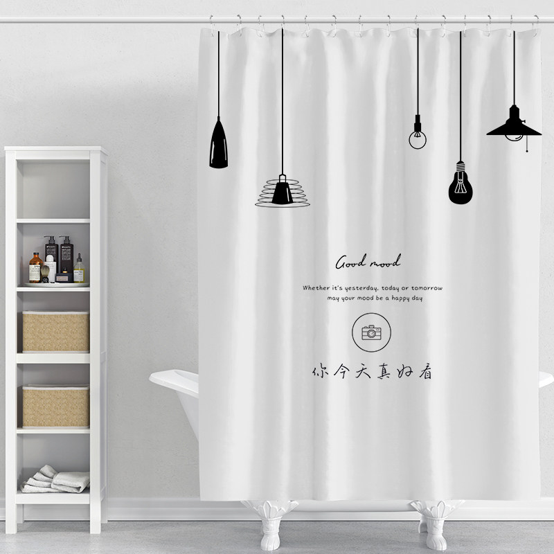 Household Japanese-style shower curtain set waterproof high-end powder room partition black-out curtain free punching thick cartoon curtain
