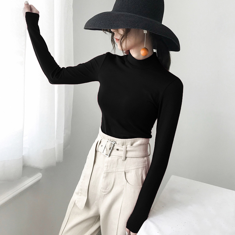 Autumn and winter base shirt women's long sleeve orange T-shirt half high collar slim fit inside cotton collar tight foreign pie top