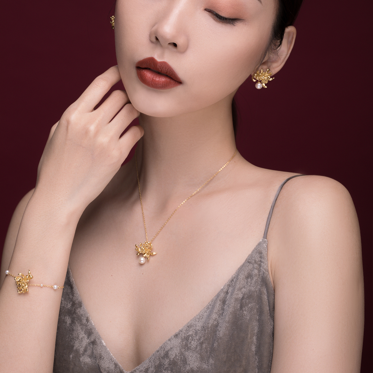 HeyJewel Cloisser-clad people light as the Chrysanthemum Series 925 Silver Gilded Chrysanthemum Pearl Necklace