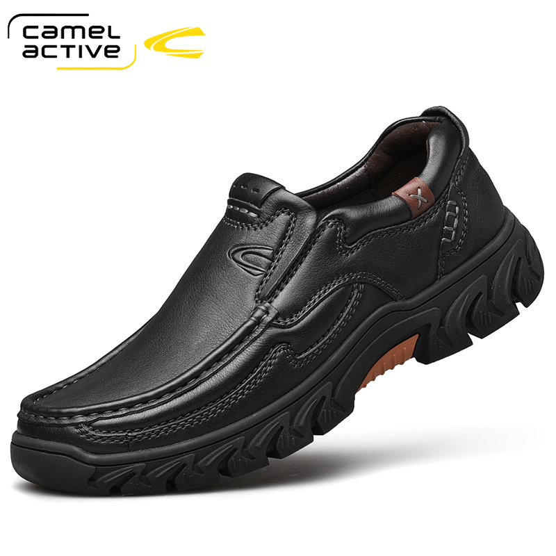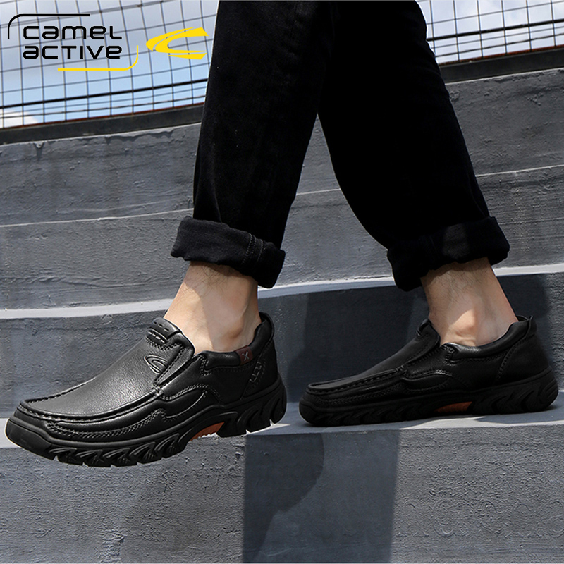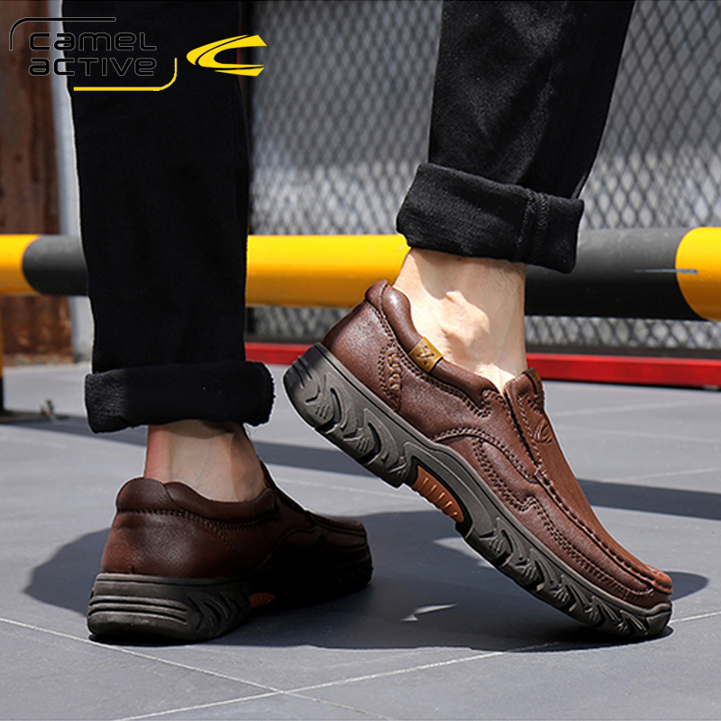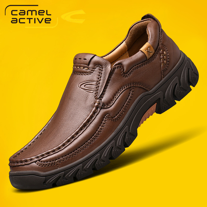German camel dynamic men's shoes autumn outdoor casual shoes men's slip-on leather shoes leather middle-aged dad shoes soft sole