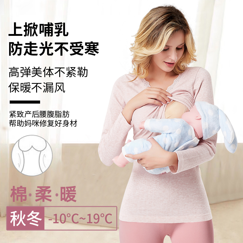 Breastfeeding autumn coat autumn and winter heating clothes plus velvet thick bottoming shirt postpartum confinement pajamas nursing clothes