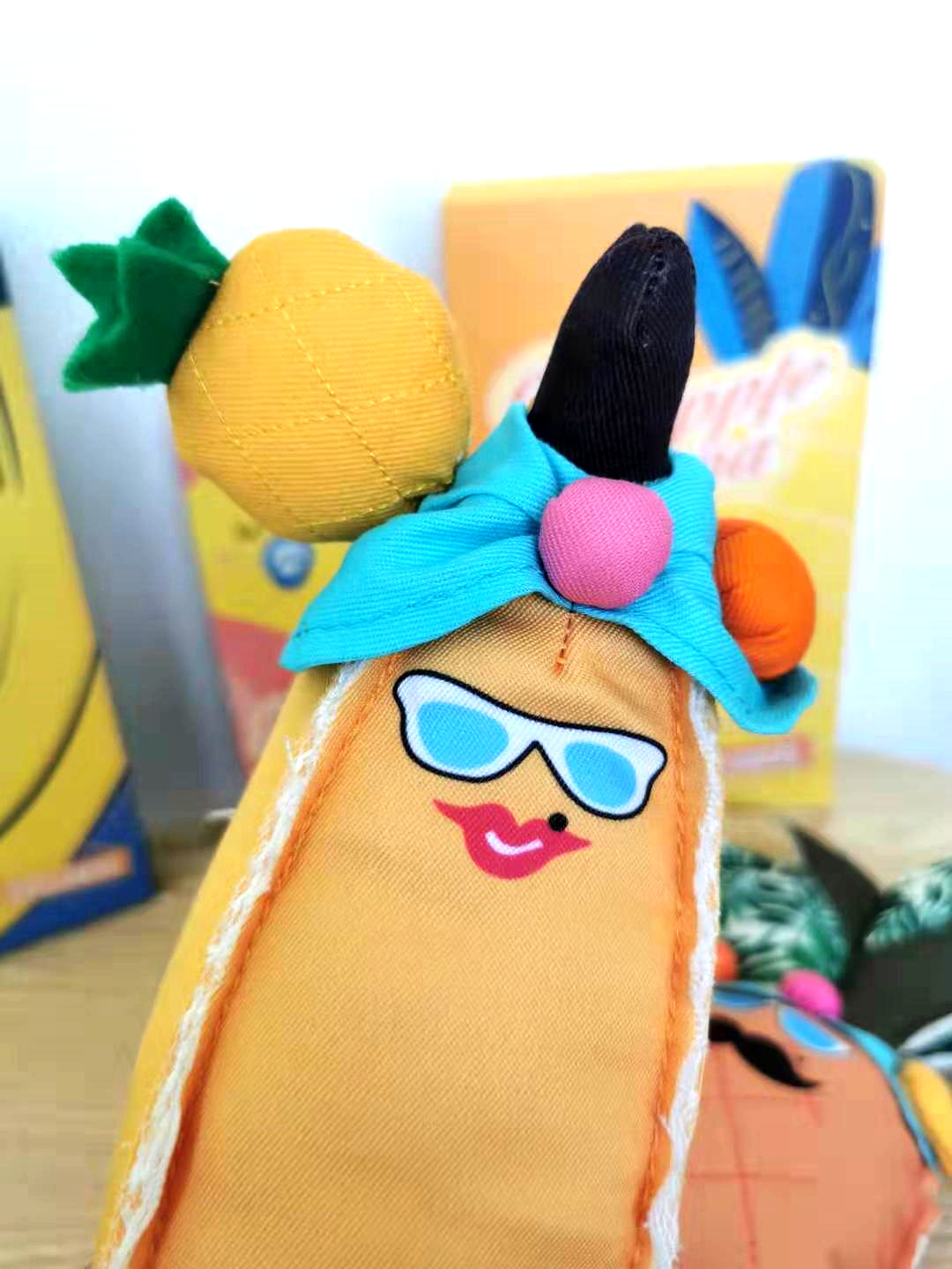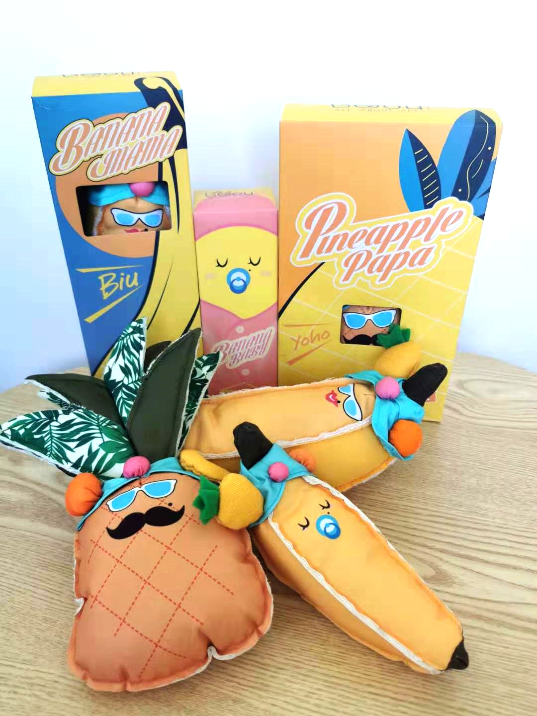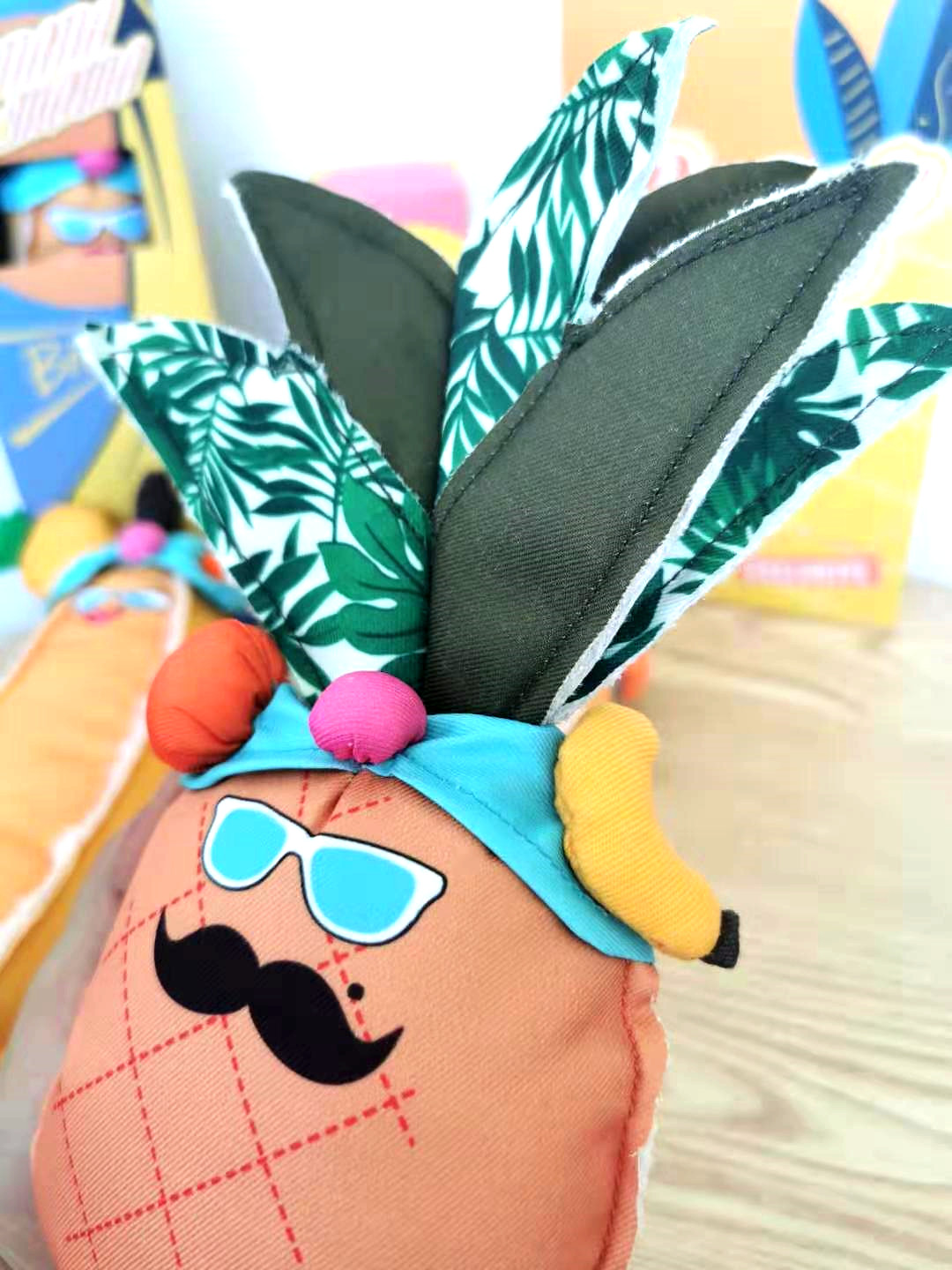 BOOUP bite-resistant fabric sounding toy pineapple dad banana mom a large, medium and small dog companion dog toy