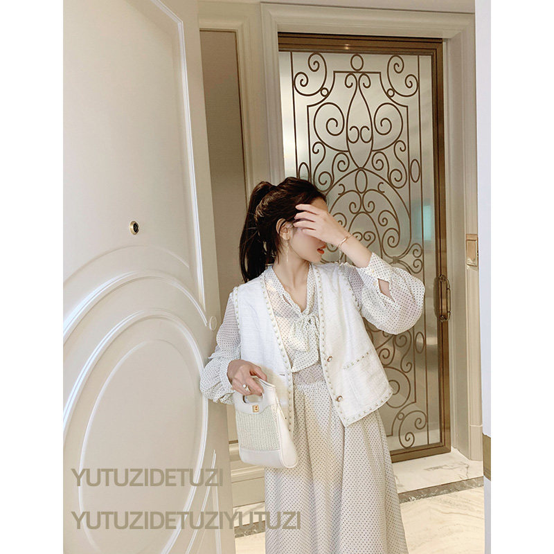 Fish rabbit vest dress 2019 autumn and winter new suit temperament polka dot skirt small fragrant western style two-piece suit