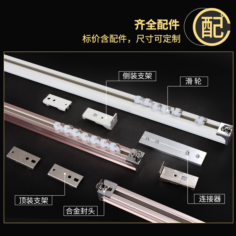 Geyi thickened curtain track slide mute single and double track aluminum alloy straight rail Roman pole top-mounted side-mounted customization