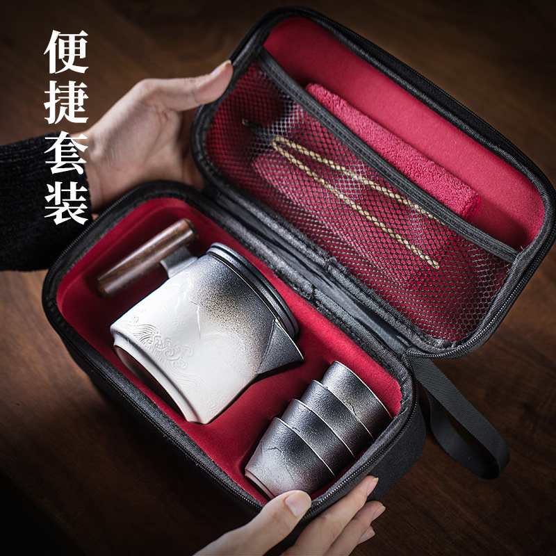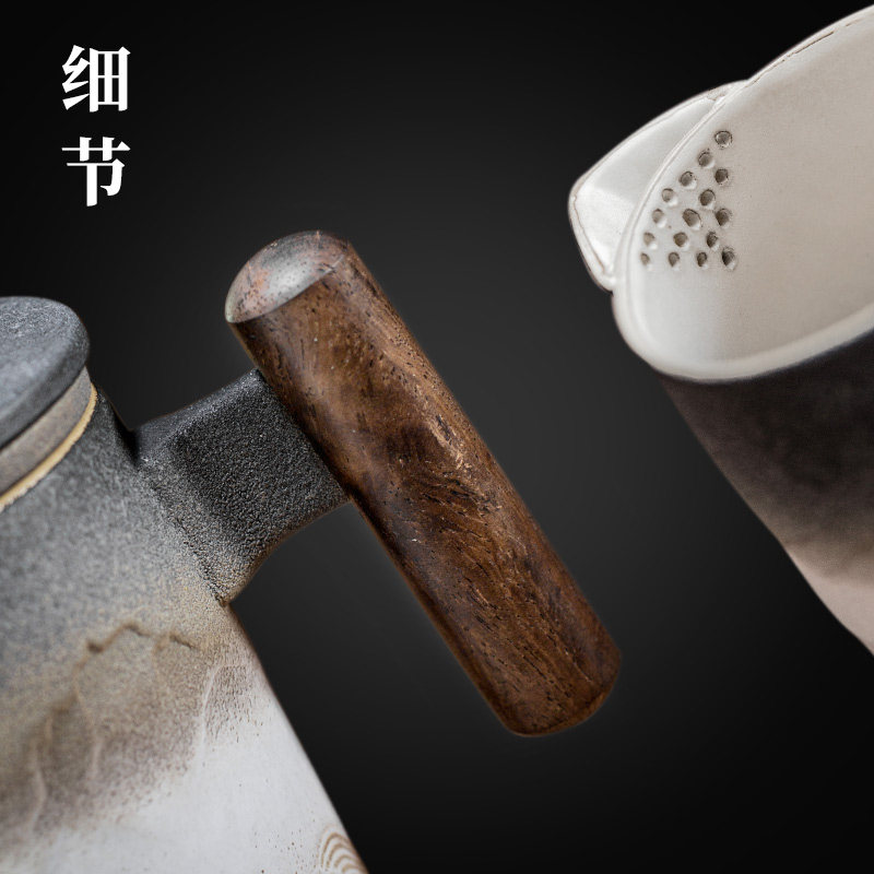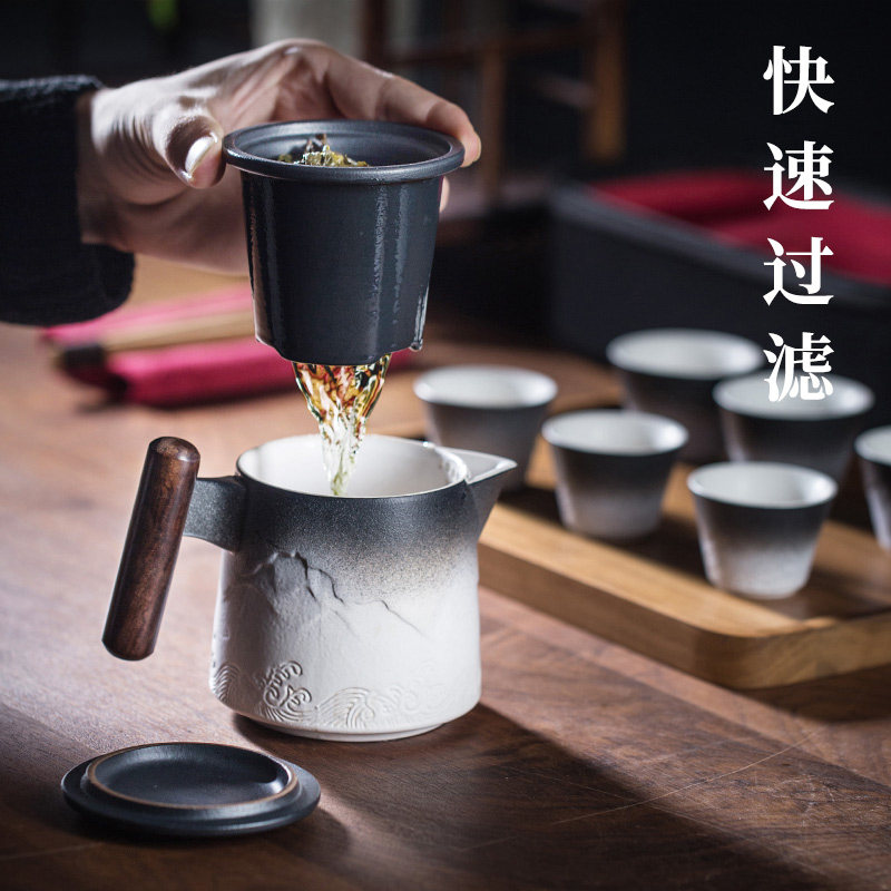(Gift box) Shanhai-Black sandal bubble teapot 7 pieces (Gradient black and white) (Gift box) Shanhai-ceramic handle teapot 7 pieces (Gradient black and white) (Gift box) mountain and sea line