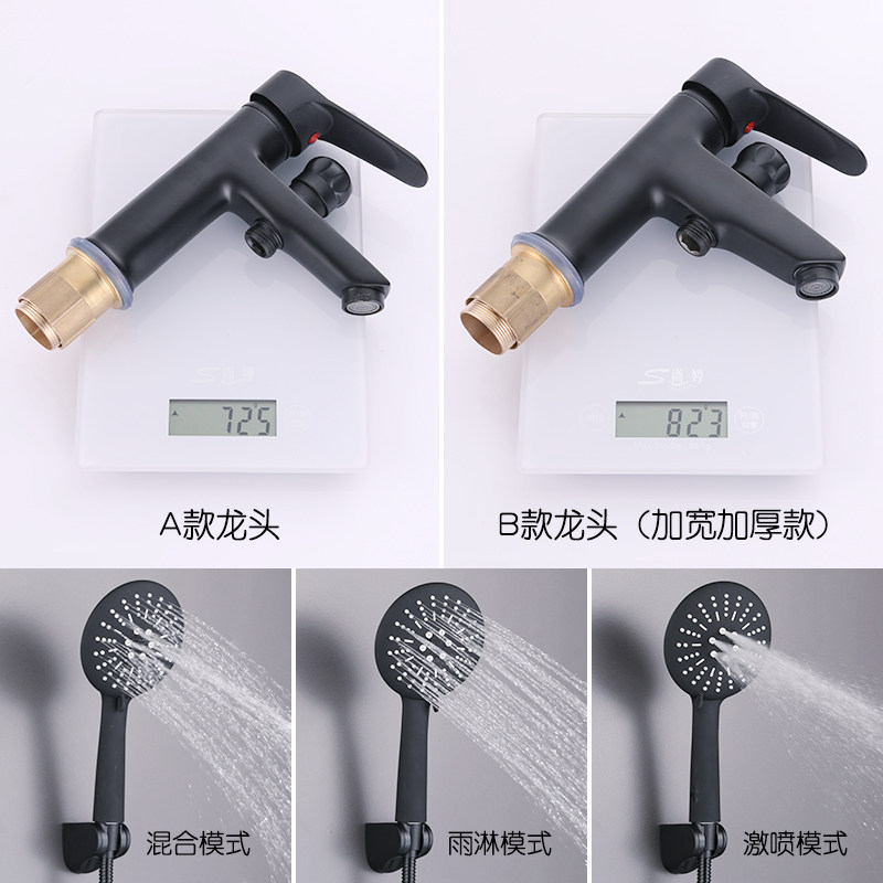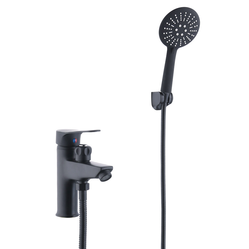 Elegant and black single-hole hot and cold tap with shower head