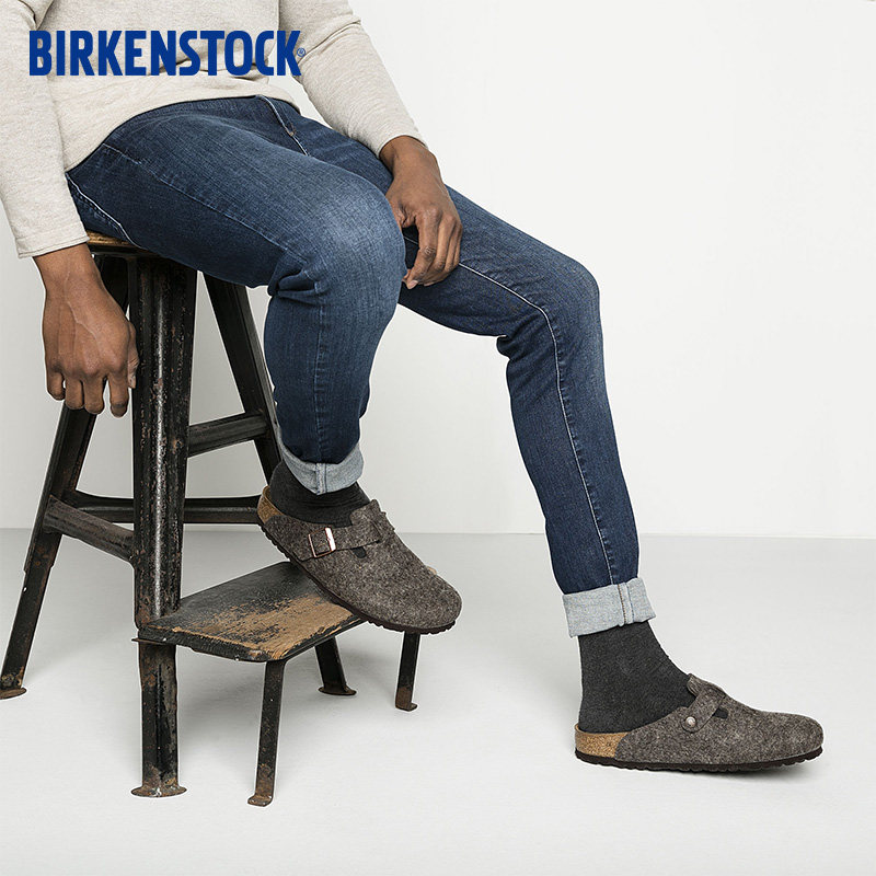 BIRKENSTOCK Autumn Winter Sheep Felt German Cork Fashion Slippers Boston Series-Taobao