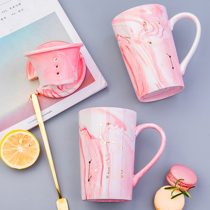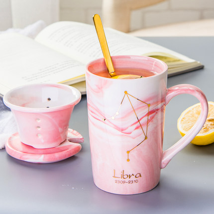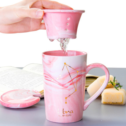 Creative Nordic ins cute home Tea leak filter tea cup ceramic cup children drink mug with lid spoon