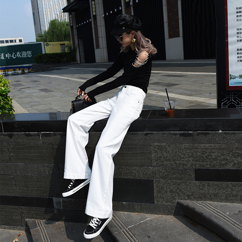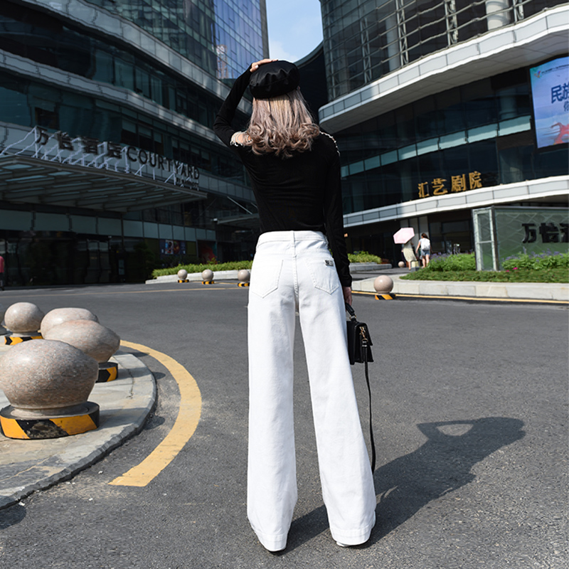 White wide-leg jeans women's spring and autumn narrow version high-waist drape high-quality sense 2023 new summer pants straight