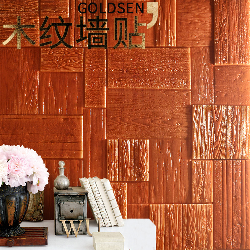 Wallpaper self-adhesive 3D three-dimensional wall sticker Chinese style wood grain living room TV background wall decoration soft package foam brick wall sticker - Taobao