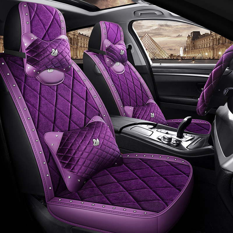 21 new car seat cushion all-inclusive net red fashion short plush swan diamond seat cover seat cover female winter warm