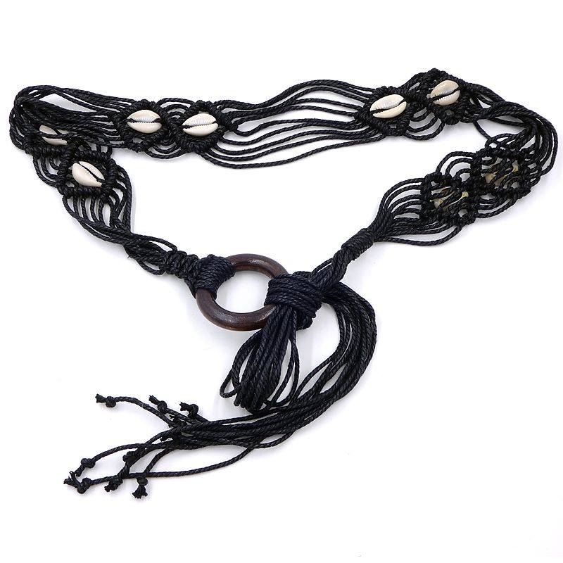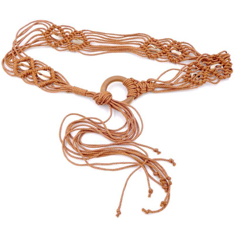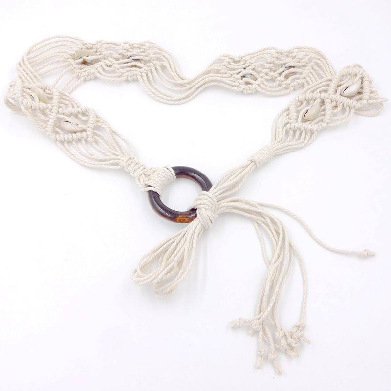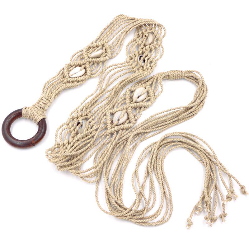 Summer Waist Rope Ethnic Wind Ruby Rope Handwoven Waist Chain matching with foreign clothing Wooden Buckle Shells to decorate the girdle Women's new