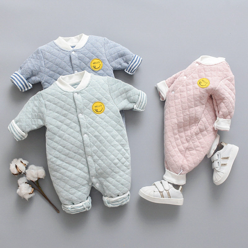 Baby warm jumpsuit Spring and autumn clip thin cotton outerwear Baby plus cotton coat pure cotton newborn autumn and winter climbing suit