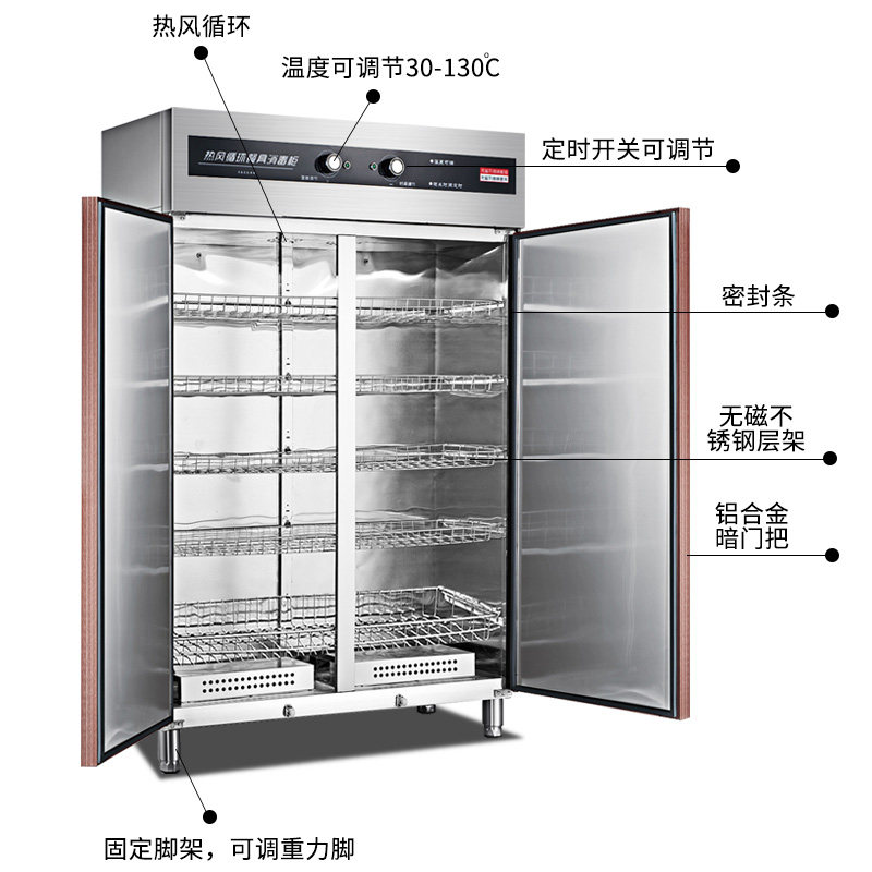 Large high temperature tableware disinfection cabinet commercial double door vertical school cafeteria cleaning cabinet large capacity stainless steel bowl cabinet