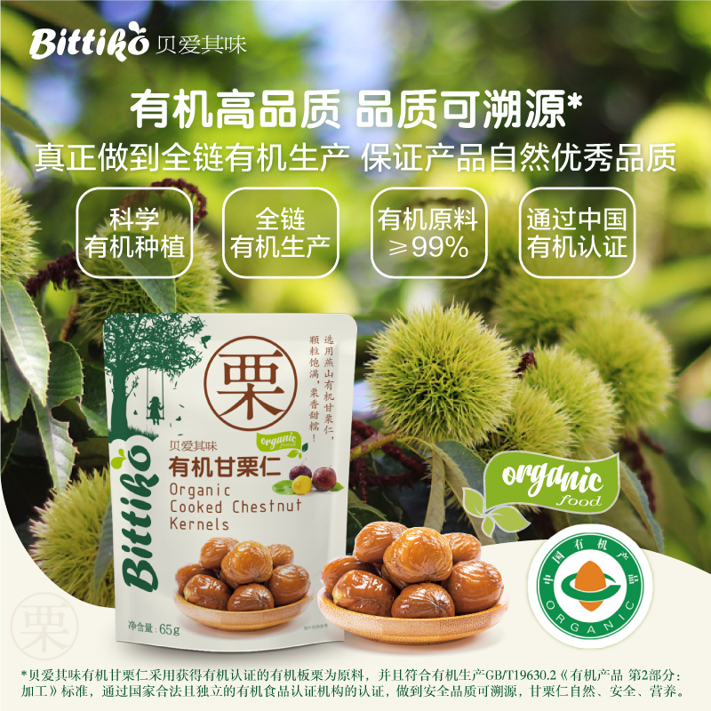 Beiai Qiwei Organic chestnut kernels Ready-to-eat chestnut chestnut kernels Children's snacks 65g bags of dried fruit snack food