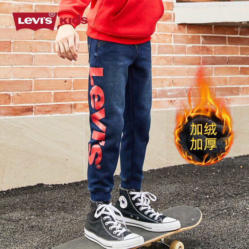 Levis Levis boy clothing boy gush jeans children 2023 autumn winter new long pants thickened pants children-Taobao