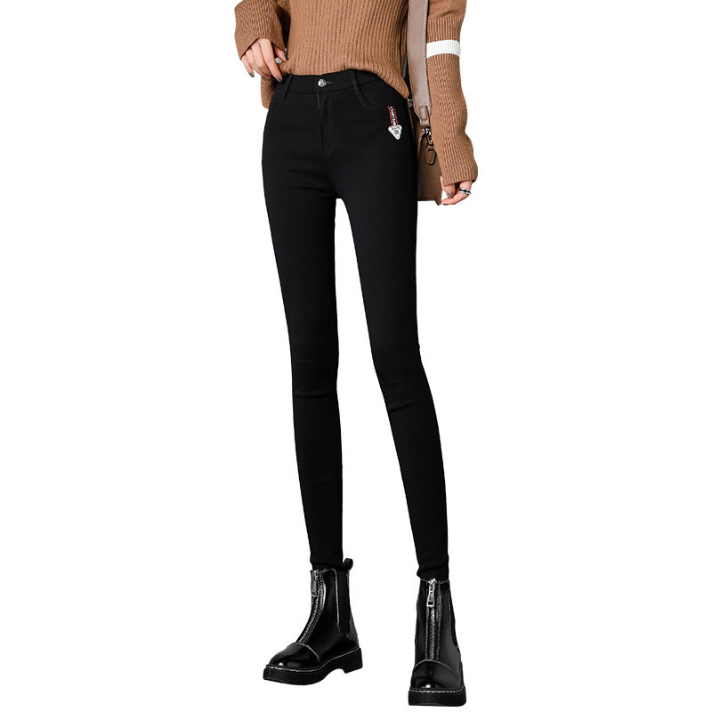 Outer wear plus velvet pants women's autumn and winter 2022 new high waist Korean version of thin stretch length pencil pants