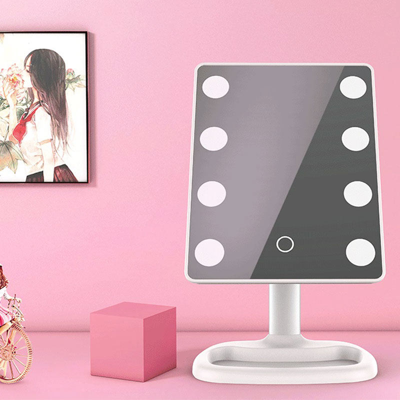 Net red mirror Cosmetic Mirror Desktop LED Lamp Desktop with light bulb Large Number of Home Girl Dormitory Tonic Light Makeup Mirror