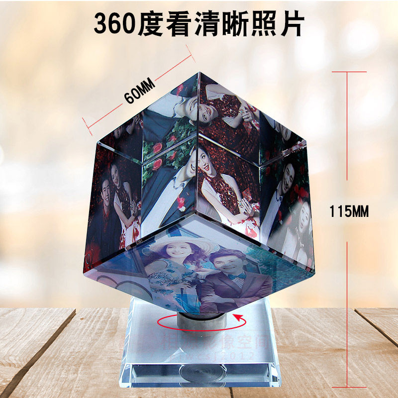 Rotating photo table crystal heart-walking gift for girls customized small gift creative crystal Rubik's cube photo customization