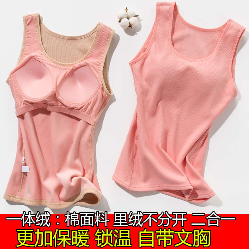 Wear-free bra Winter Warm Vest Lady Thicken Plus Suede Beating Bottom With Chest Cushion Large Size Cup Type Integrated Underwear