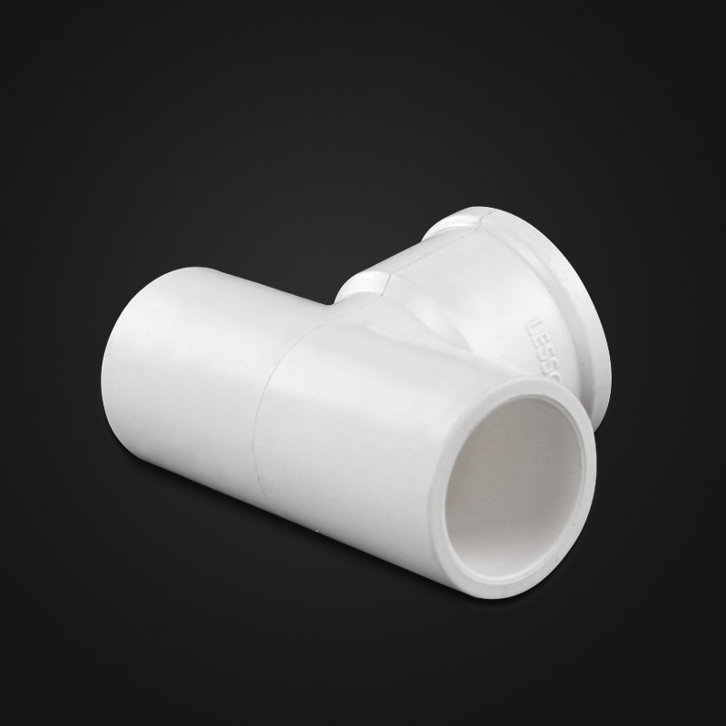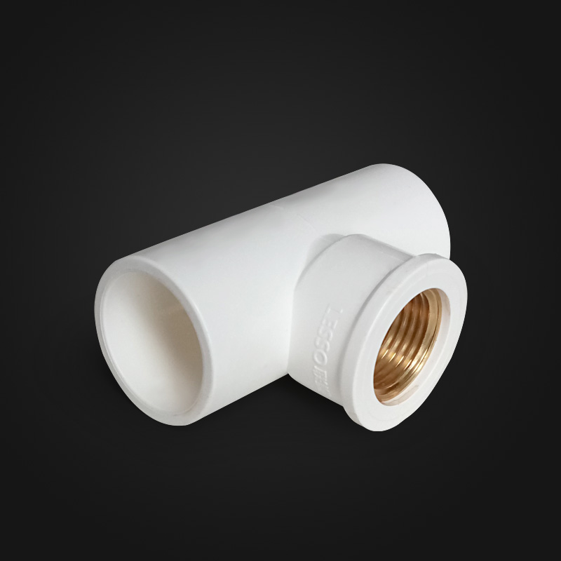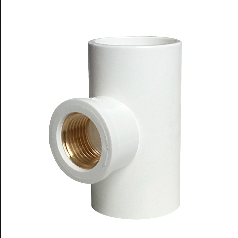 Adhesive UPVC plastic copper inner teeth three-way PVC water pipe T-type with teeth trident copper inner threaded three-way connector