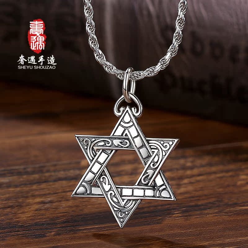 Luxurious Six Mans Starmen Necklace Bully's Masculinity Pure Silver Pendant Accessories Sweater Necklace to send boyfriend gifts