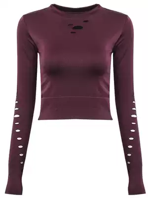 QSQG yoga long-sleeved women's top tight sexy umbilical stretch sports T-shirt running training fitness clothing top