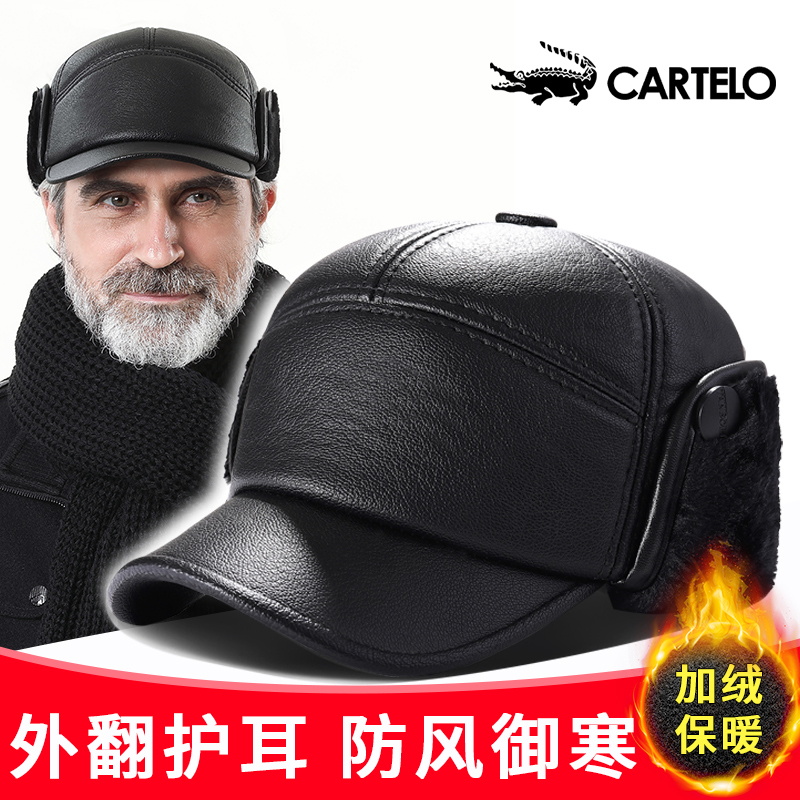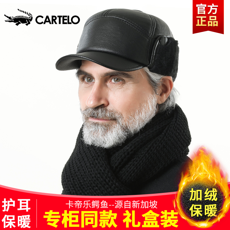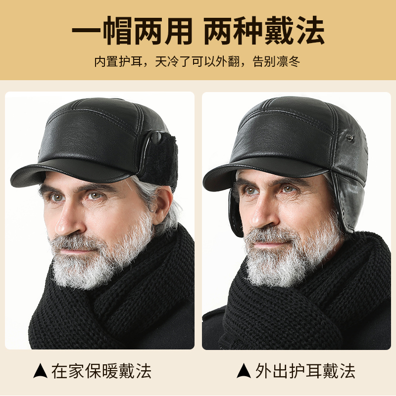 Alligator Hat Man Winter Daddy Middle-aged flat cap for ear guard old man hat warm grandfather cotton hat in autumn winter