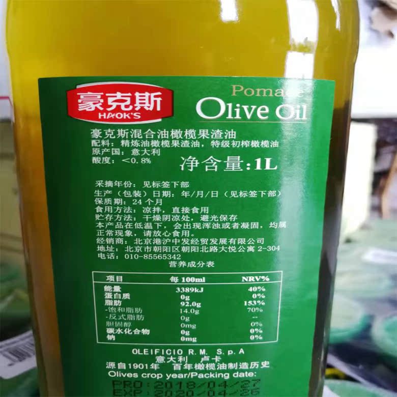 Hawkes mixed oil olive pomace oil 1L Italy imported cold stir-fry directly edible