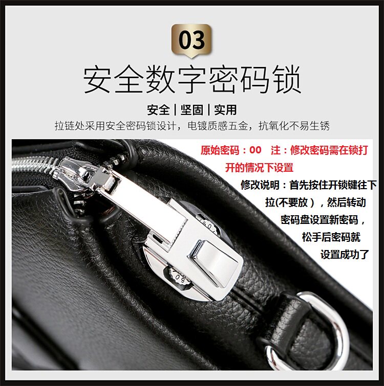 Bull Leather Code Lock Men's Handbag Handbag Genuine Leather Foreign Trade Business Men's Briefcase Single Shoulder Diagonal Satchel Boomer