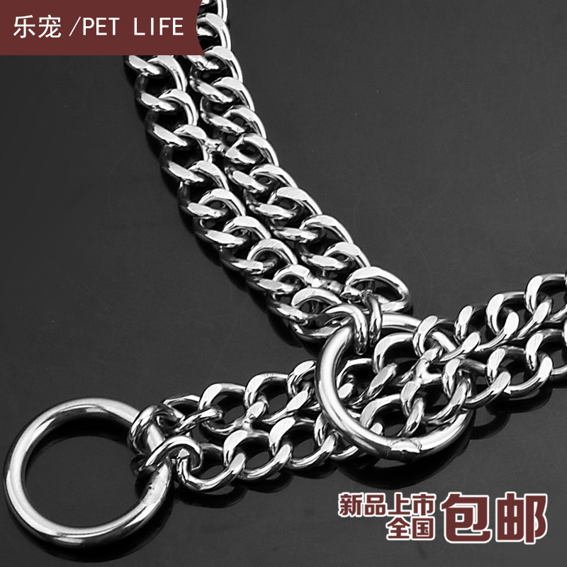 Double row stainless steel P chain German shepherd collar large dog chain Rottweiler necklace explosion-proof training accompanying P word chain