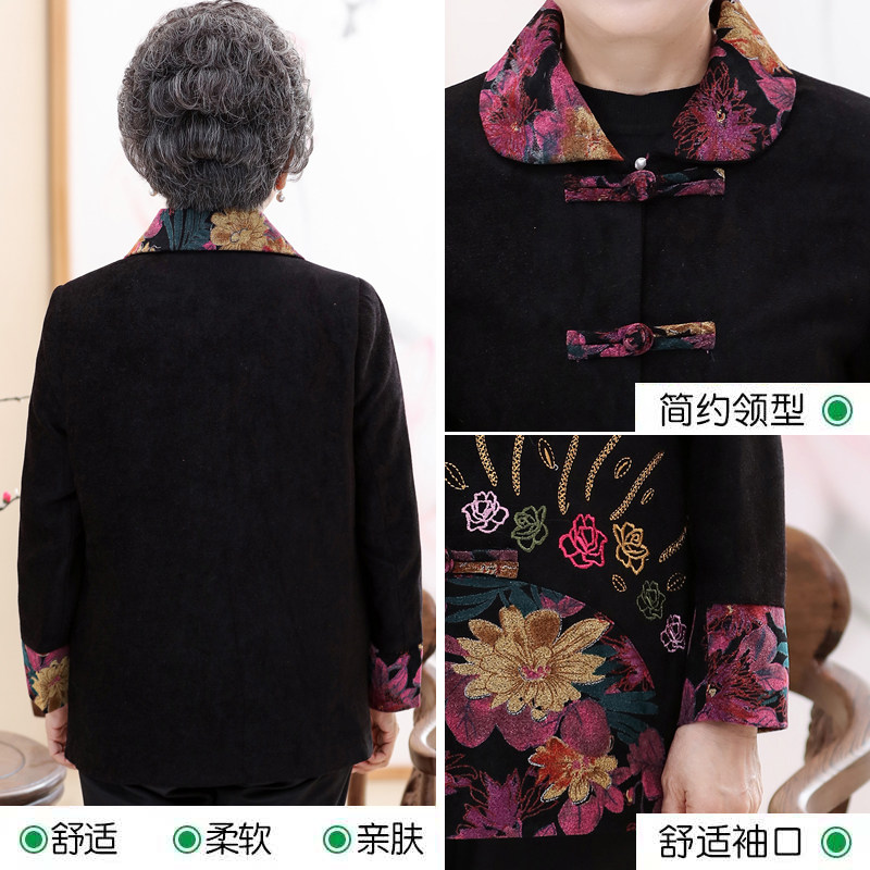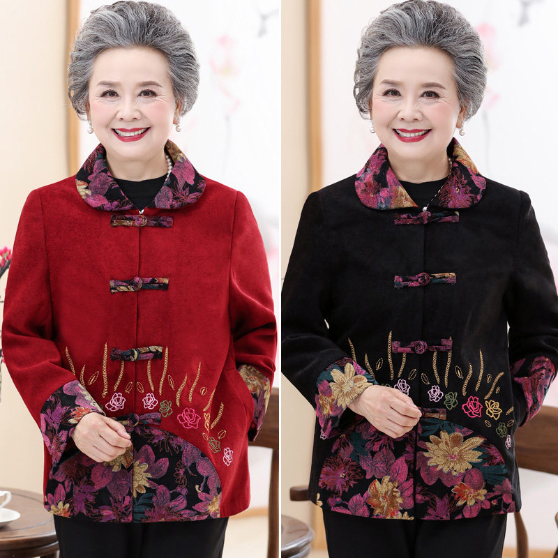 Middle-aged and elderly Spring and autumn women's jacket 60-70 years old Tang dress old lady clothes elderly mother grandma dress up and thin