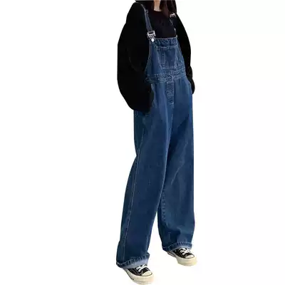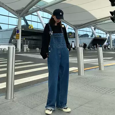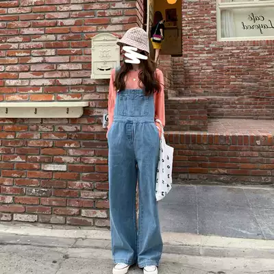 2021 new large size age reduction denim baby bag pants female fat sister mm Ya Feng Korean loose jumpsuit tide tide