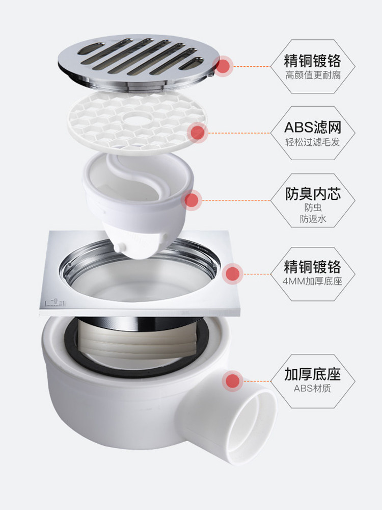 Submarine side row copper floor leak anti - odorkeeper room shower washing machine wall row 40 shift homogeneous ground leak