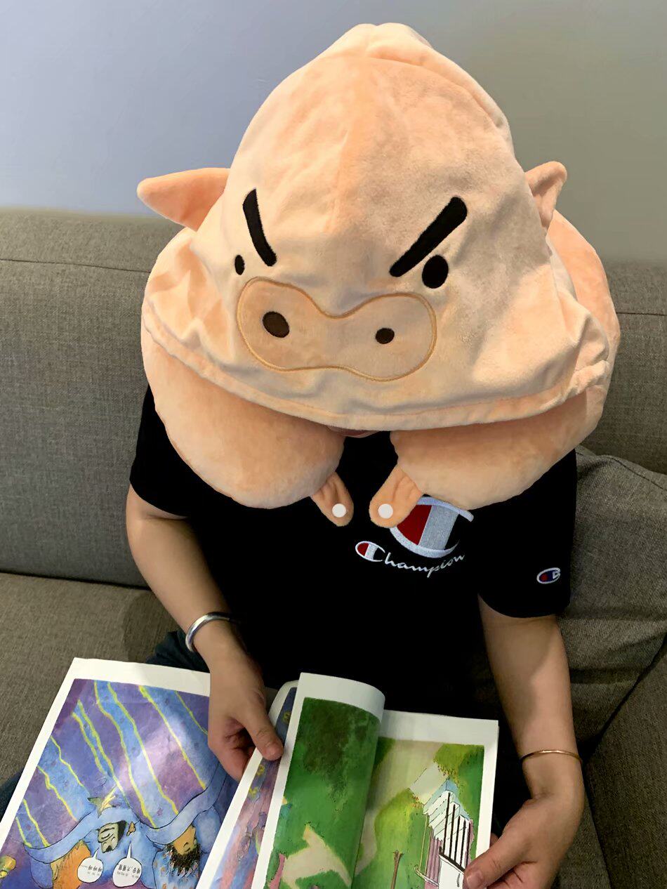 Cartoon Cute Teenage Girl Hearts Wax Pen Little New White Cartoon Hat U Type Pillow Neck Pillow U Pillow Afternoon Nap Pillow Even Girl