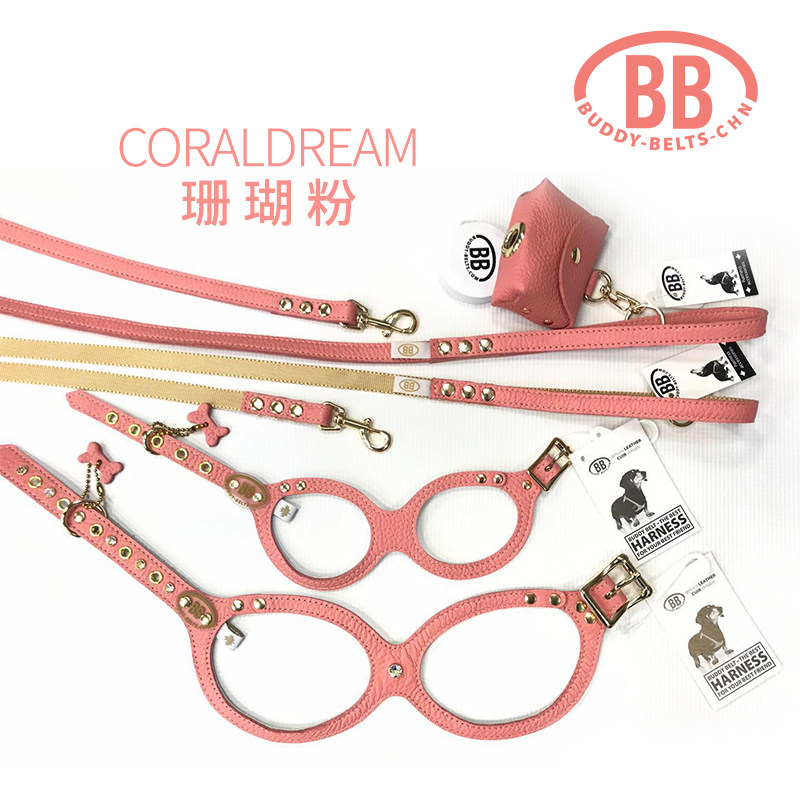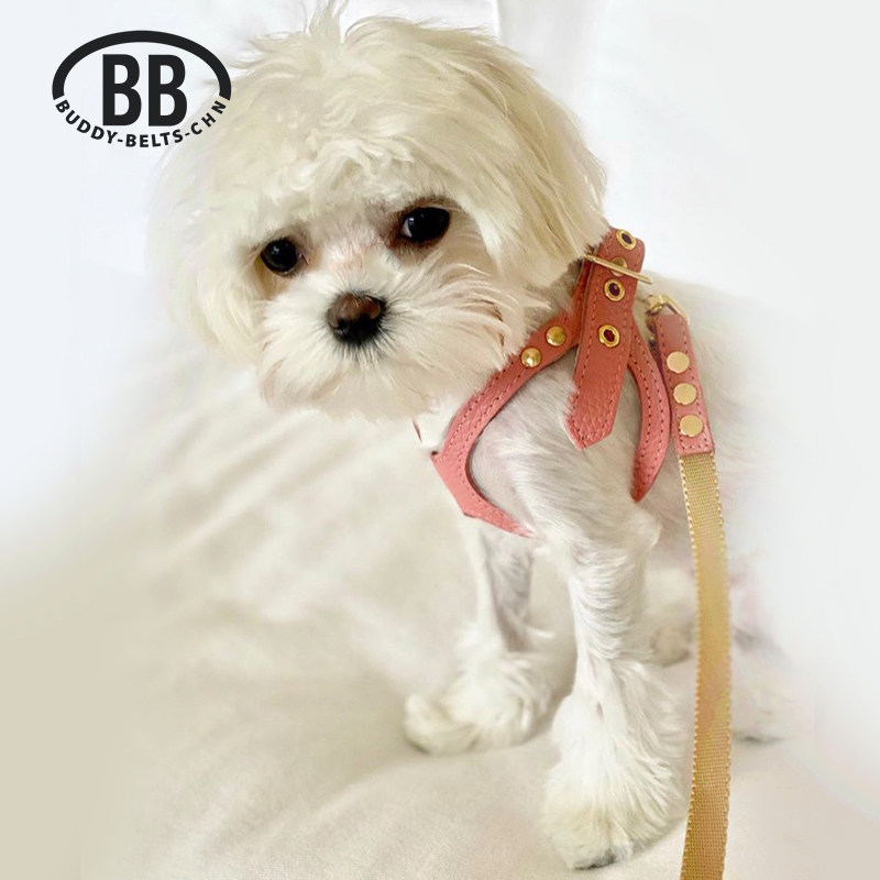 Buddy Belts Canada BB Chest Back Import Handmade Leather Pet Vest Type Tow Coral Powder
