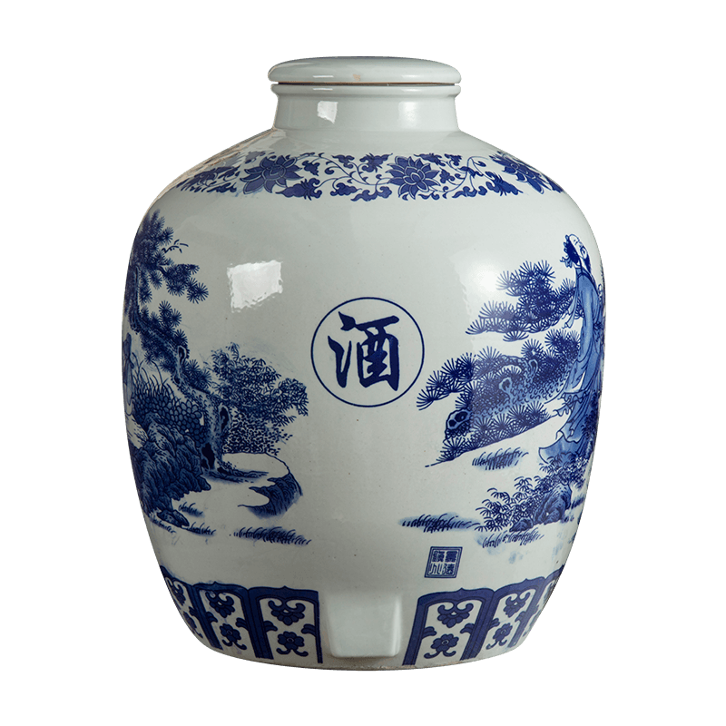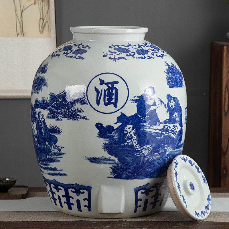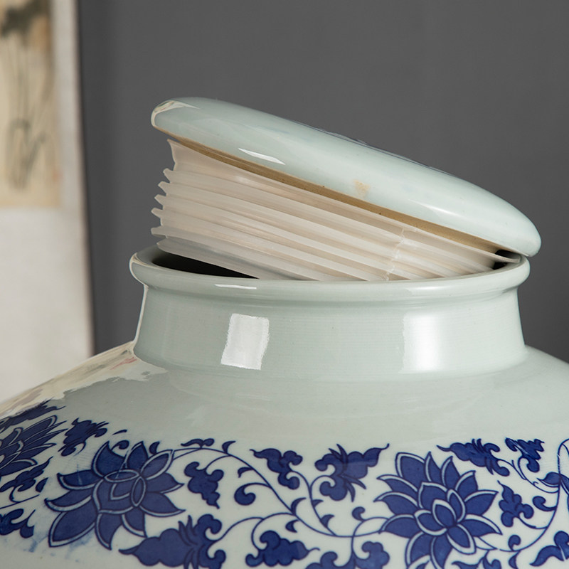 Jingdezhen ceramic wine jar big mouth sealed blue and white porcelain bubble wine tank 50 catties 100 catties 150 catties kiln storage wine tank