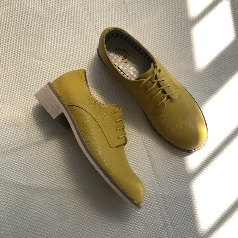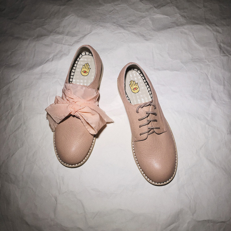 Ding Yin studio) original fresh all-match single shoes women low heel round toe Japanese retro big toe small leather shoes women