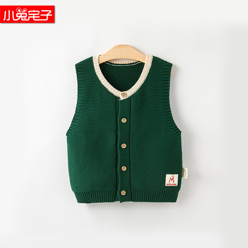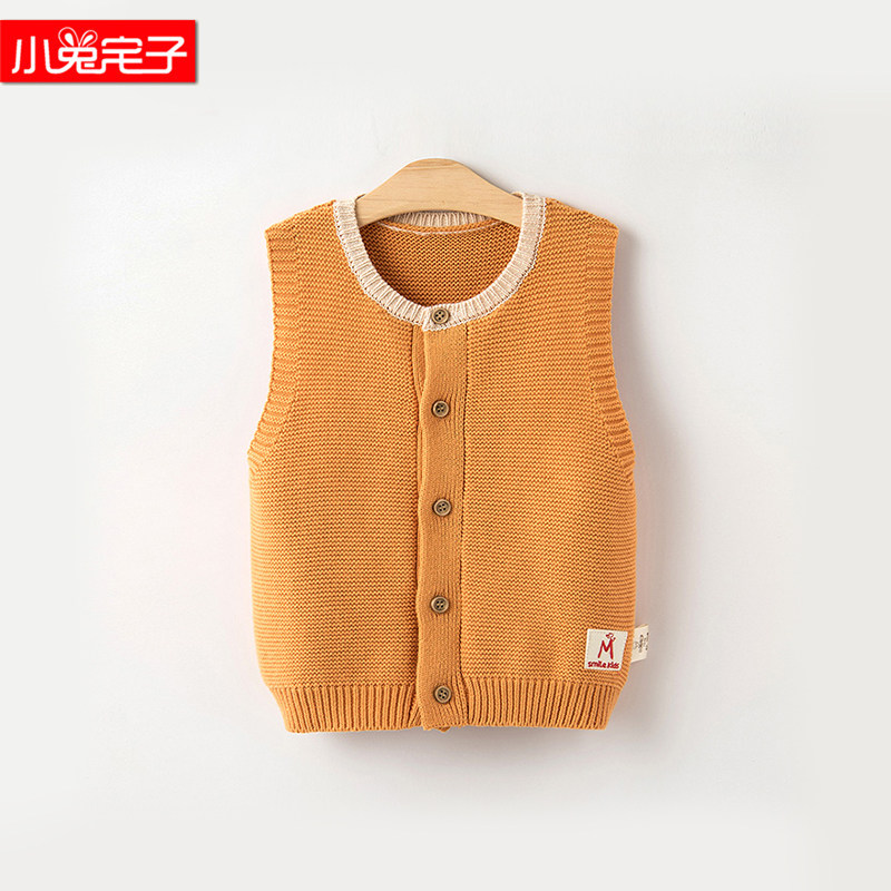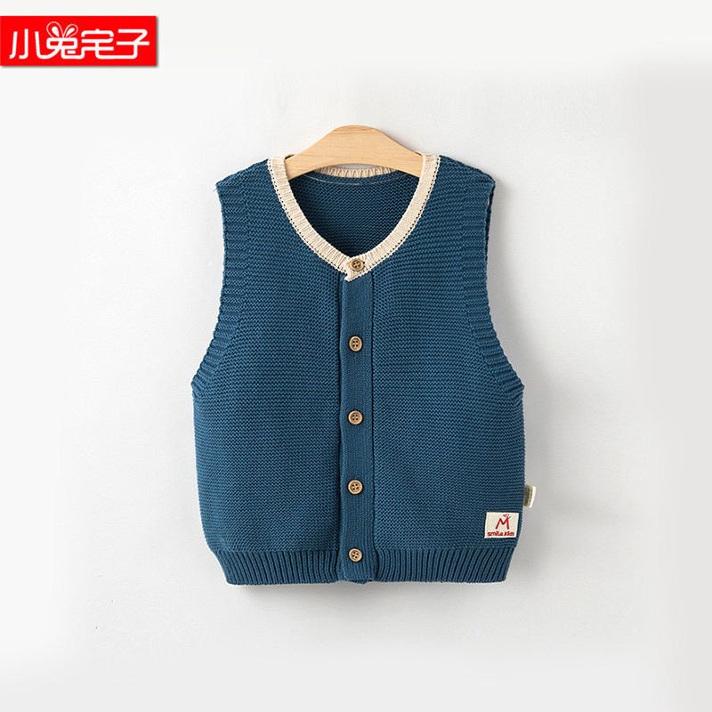Baby Spring and Autumn Knitted Vest Warm Small Vest Infant Western-style Wool Vest Shoulder Autumn and Winter Baby Sweater Vest