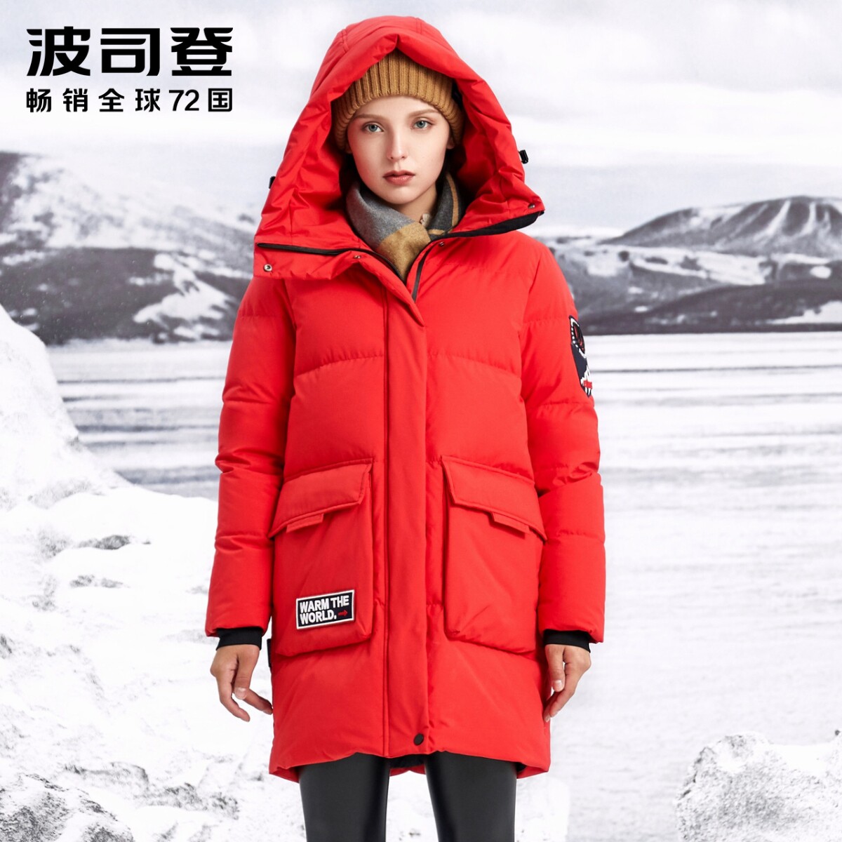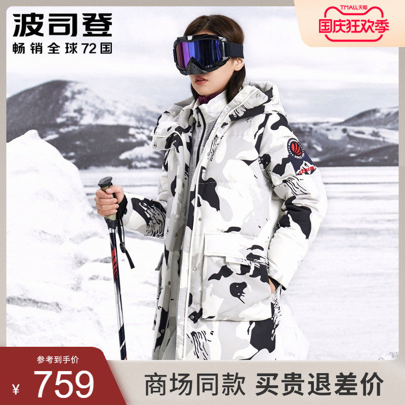 Bosideng 2022 down jacket women's new mid-length version of the extreme cold series hooded camouflage warm and thick goose down jacket