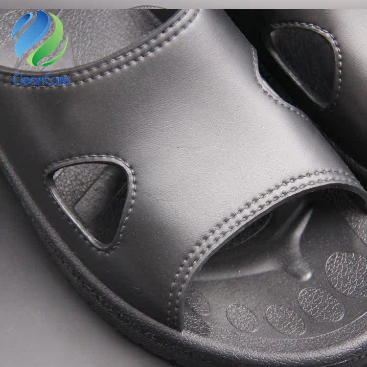 Suzhou factory supply antistatic slipper black SPU thickened bottom two holes shoe purifying shoe spot