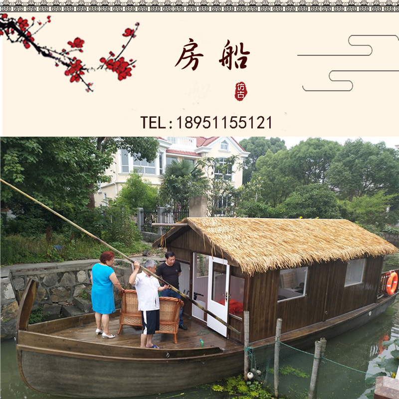 Houseboat, solid wood houseboat, hotel, water outdoor house, painting boat, housing, dining, European-style sightseeing, Maldives boat