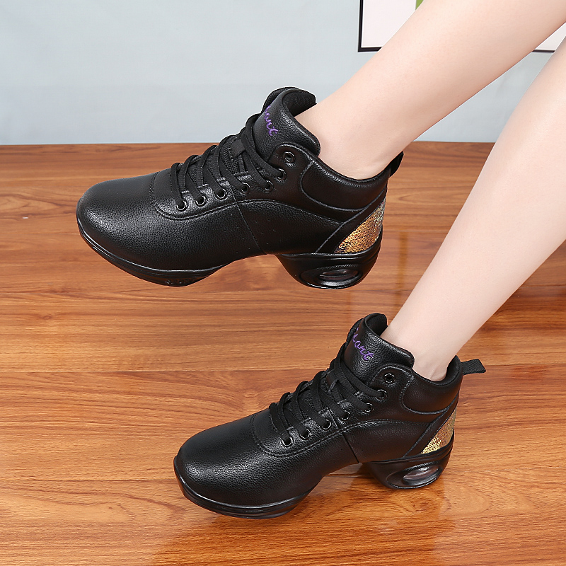 Dance with the heart of the square dance women's shoes autumn and winter new leather middle heel fashion dance shoes Sailor soft-soled dance shoes for women