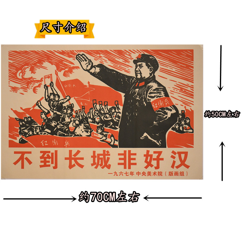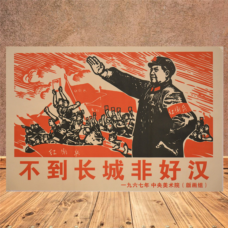 If you don't reach the Great Wall, you are not a hero. The portrait of Mao Zedong, the portrait of Grandpa Mao, retro propaganda poster, living room, office porch mural